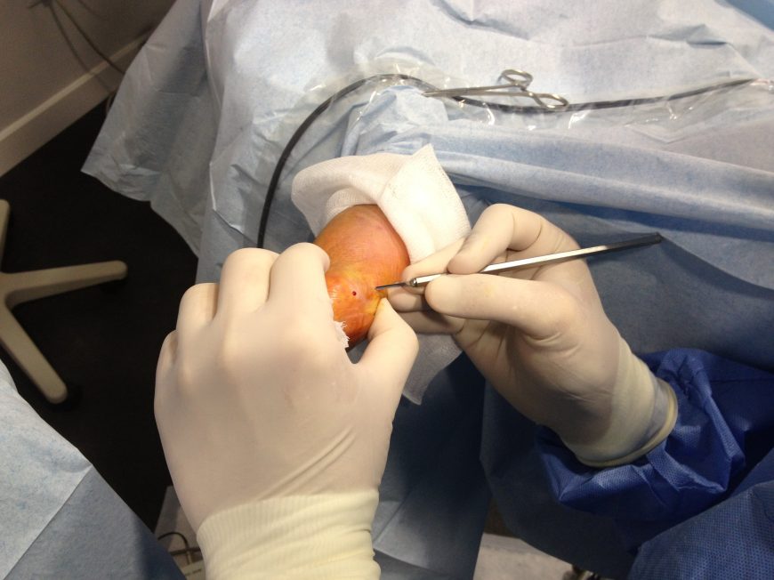 - Una incisión de pocos milímetros ofrece una recuperación más rápida y sin dolores post-operatorios porque respeta las articulaciones y tejidos blandos del pie.